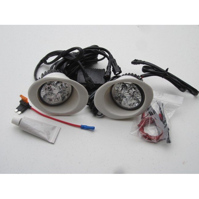 This kit comprises 2 lamps with 4 high power 1 watt LEDs in each lamp set in a moulding that fits into a hole cut in the front bumper. The moulding has been designed by Ledcom and is exclusively manufactured for us in the UK from tough and durable smooth ABS for painting to colour code bumpers. CT1 type adhesive required (not supplied)